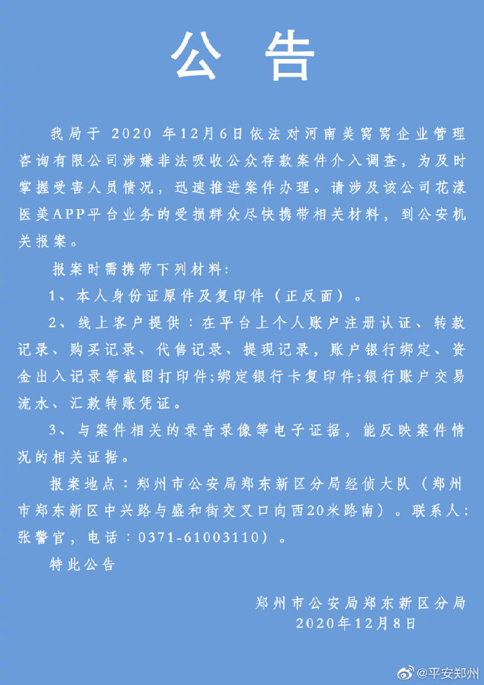 郑东新区公安分局关于征集一起案件相关信息的公告